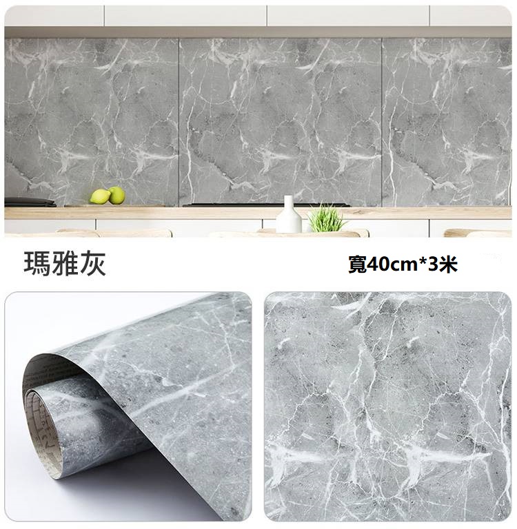 半小時前限時搶購 廚房貼紙防水防油大理石家具貼膜自粘牆紙瓷磚灶台桌面櫃子保護膜 - 4卷,僅需NT$999